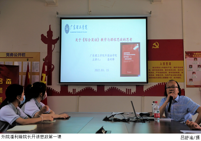 潘利锋院长结合学生专业特点,以“高校《综合英语》的设置现状分析与解读”为主题,指出该门课程的教学对人才培养的要求是“符合新时代大发展、大变革、大调整的要求,符合我国日益走近世界舞台中央、不断为人类作出更大贡献的时代的要求”。他指出,要把语言训练与人文素质培养相结合,并提出在教学实践中,要充分挖掘课程的思政元素,正确对待中西方文化与文明,做到开眼看世界的同时,也要有责任担当意识。