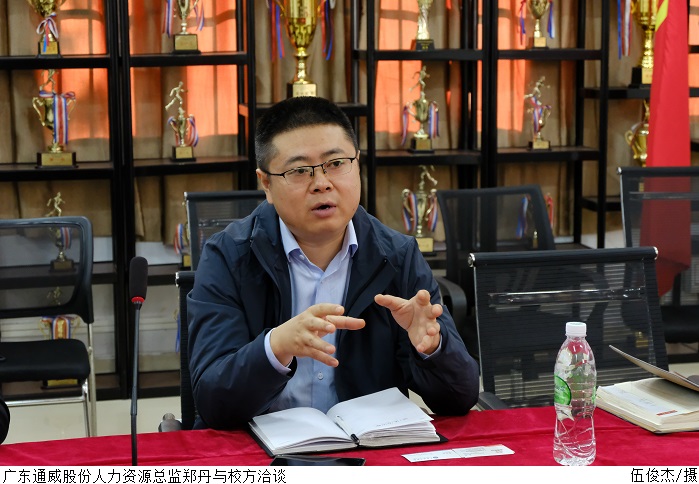 郑丹介绍了企业的具体情况,他表示通威股份实行统筹管理,公司分布于广东各地区,能充分满足学生对工作区域的要求,公司可为学生未来的职业发展提供平台。