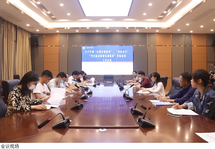 本网讯(学生处 李家辉)10月29日下午,学生处在行政楼101会议室召开关于开展“文明示范宿舍”、“杰出舍长”和“学生宿舍管理先进院系”评选活动工作会议,各院系党总支书记、学工部长参会。会议由学生处处长谭蒙革主持。