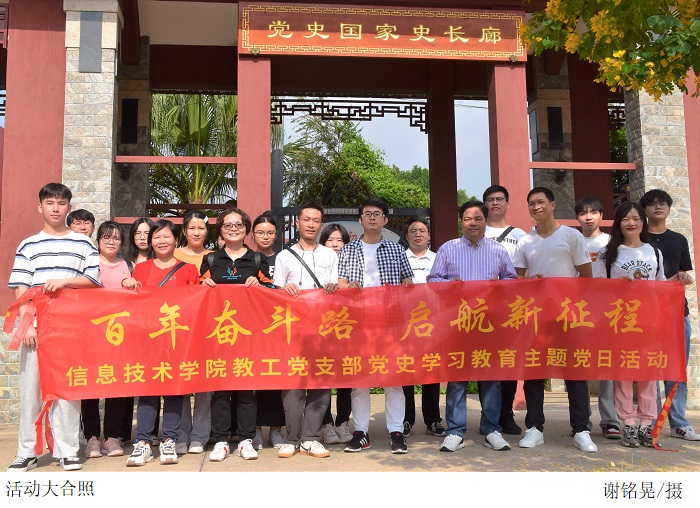 本网讯(信息技术学院 严奕信)为深入开展党史学习教育,引导党员在学习党史中重温初心使命、厚培奋斗意识、践行担当作为,11月6日,信息技术学院党总支组织院系党员到江门市新会区开展“奋斗百年路,启航新征程”主题党日活动。
