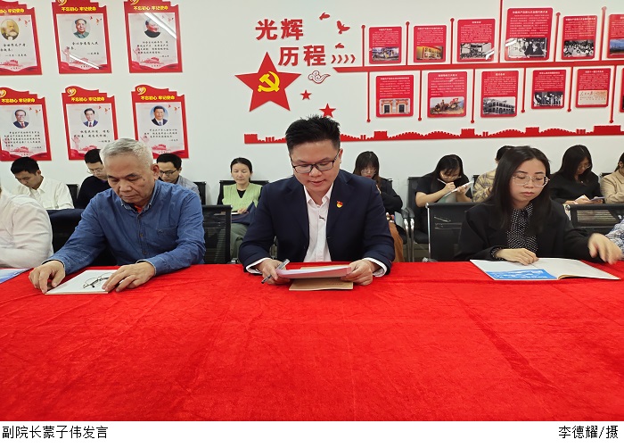 周景报围绕党史学习教育与学习领会习近平总书记“七一”重要讲话谈了三点体会。他指出,弘扬伟大建党精神,应坚持“九个必须”。党史学习教育融入思想政治教育体系是高校落实立德树人根本任务,推进课程改革创新的重要举措。作为教师,特别是党员教师将思政课融入课程,应当将党史融入思政,不断探索改革创新教学方式,夯实党史学习教育思政之基。