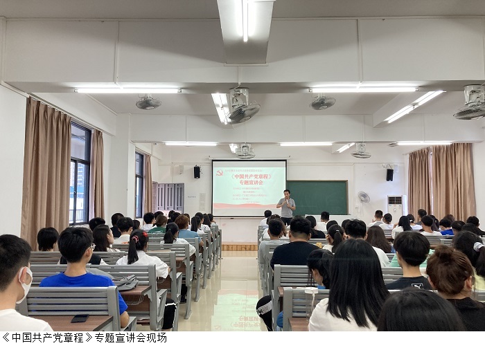 本网讯(会计学院)为增强党性修养,切实提高学生对党史学习的自觉性和主动性,会计学院在党总支的组织和部署下,于2021年10月8日上午在鼎湖校区7403教室开展《中国共产党章程》专题宣讲会。此次会议由会计学院党总支黎伯毅书记主持,党总支徐永明副书记、学生第一党支部郭凤玮书记、21级各带班辅导员老师以及21级各班级干部代表参会。