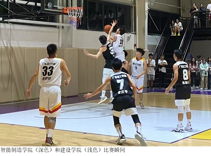 赛场上,裁判员尽职尽责的完成工作,各参赛运动员以斗志昂扬的精神迎接着每一场比赛,帅气的抄截、跳投、盖帽、远距投球给现场观众带来了丰富的视觉盛宴。赛场下,啦啦队同学们热情高涨,掌声、欢呼声、呐喊声回荡在场馆的每一个角落,充分展示着新时代大学生的蓬勃朝气和竞技热情。
