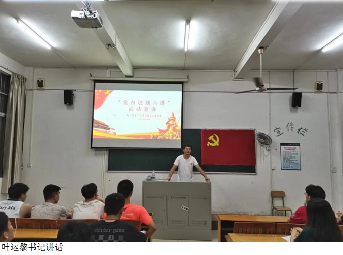 本网讯(电气与电子工程学院 叶运黎)9月8日晚,电气与电子工程学院学生党支部在5栋102教室开设“党内法规六进”活动宣讲课,学生党支部叶运黎书记出席宣讲会,电气学院入党积极分子、学生党支部干事共同参加。