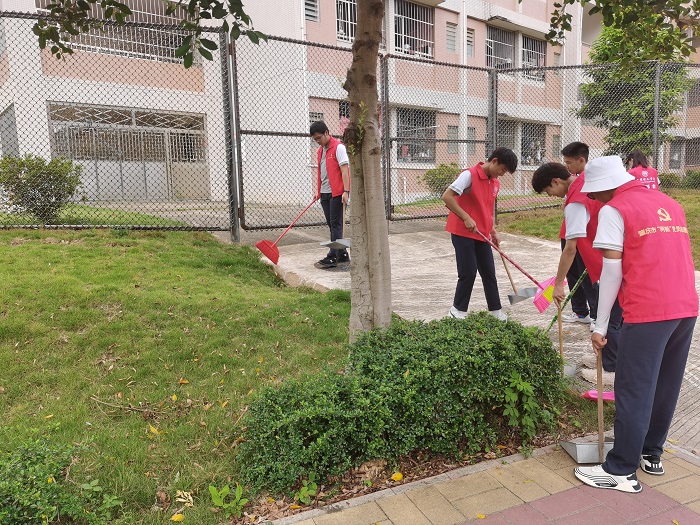 在此次活动中,同学们准时到达指定地点集合,并有序开展了一系列的清扫活动。同学们对教学楼楼道、楼梯、办公室等区域进行清洁,认真、有序地清扫学校绿化带、主干道、球场等场所,清理公区的树叶、塑料袋、烟头等垃圾。同学们分工明确,各司其职,怀着积极向上的态度参与其中,用自己的实际行动推进创文工作的开展,营造整洁美丽的校园环境。