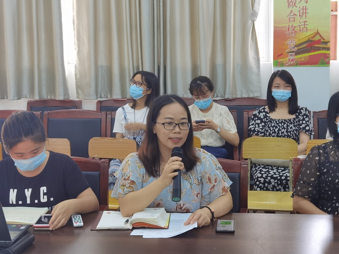 吕丽红书记首先总结了本学期的工作,并对广大党员老师的工作表示肯定,在本学年度中,党总支不断加强完善制度,规范管理。为庆祝中国共产党诞辰100周年,党总支开展了丰富的系列主题活动以及党史专题学习,使广大师生更多地了解党史,知党爱党。通过开展观影活动、参观初心堂、开展院长、书记思政课、慰问老党员、党员先锋岗活动以及红歌大合唱等,充分调动广大师生们的积极性、主动性,不断创新工作方法和工作思路,争取让学院各项工作更加充满活力。吕丽红书记分享了曹彪老师的书面学习心得。心得中提到,学习重在思维的开拓,思想的升华以及从自省中获取自信。