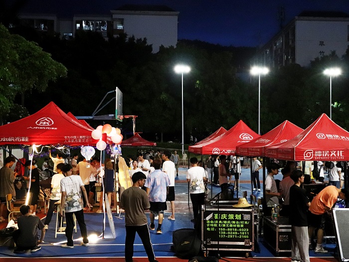 本网讯(校报记者 蔡娴芝/吴自献)5月27日晚上,beat365在西区篮球场举办了一场以“社团文化传承,建党延续百年”为主题的游园会。