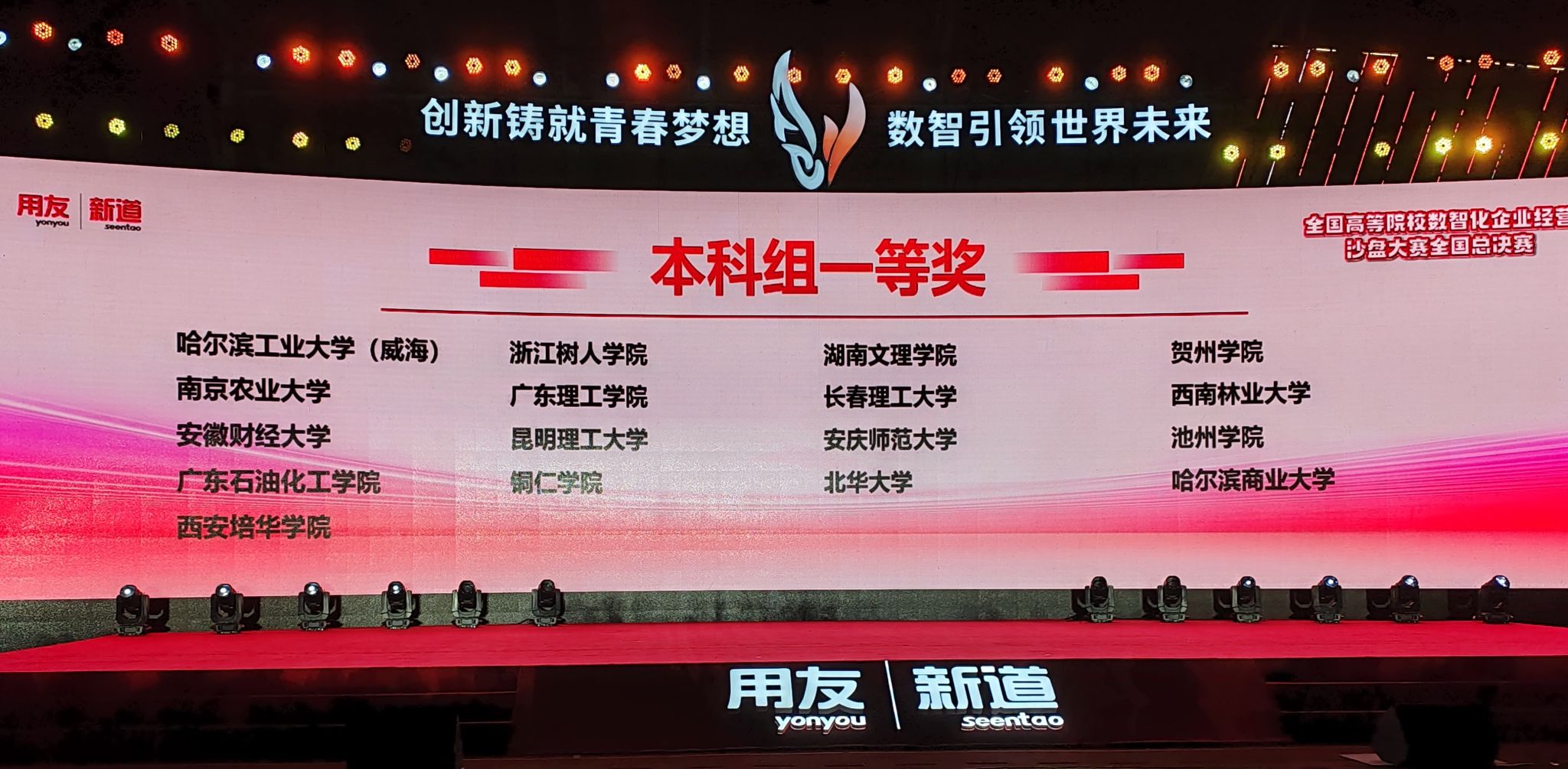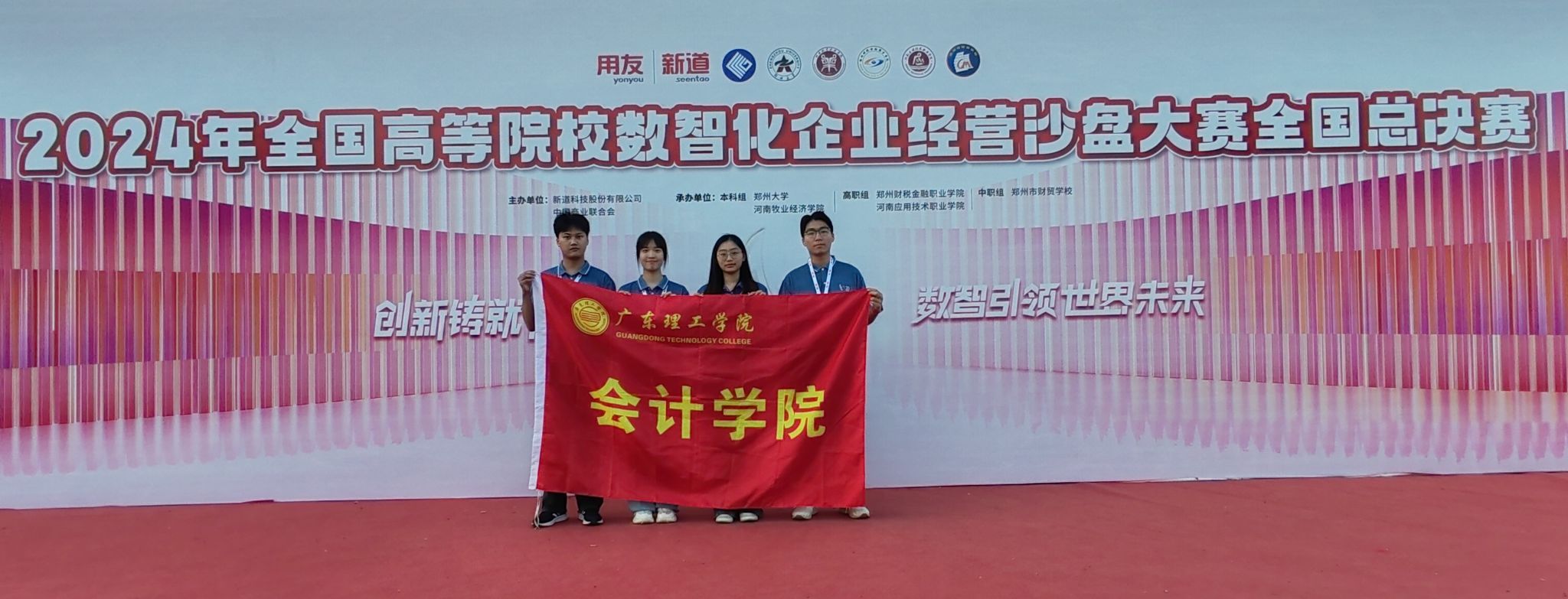 本网讯(会计学院)9月21日-22日,由中国商业联合会、新道科技股份有限公司主办,郑州大学、河南牧业经济学院、郑州财税金融职业学院、河南应用技术职业学院、郑州市财贸学校联合承办的2024全国高等院校数智化企业经营沙盘大赛全国总决赛在河南郑州举行。来自全国各地的140多所本科、高职、中职院校共300余支参赛队伍,2000多位师生齐聚赛场,展开激烈的竞争。beat365由林骏皓、陈志鹏、李鑫怡、谢紫灵4位同学组成的团队奋勇拼搏、不负众望,荣获此次大赛本科组一等奖的佳绩。