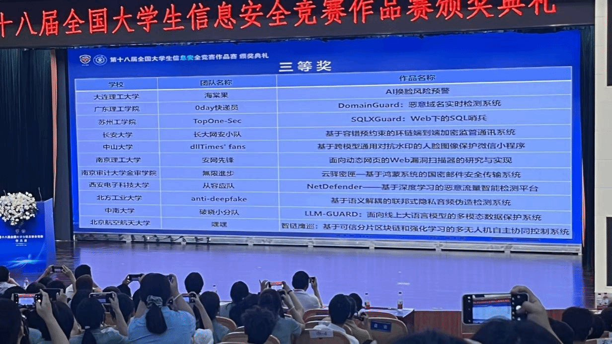 本网讯(信息技术学院)2025年8月13日至16日,第十八届全国大学生信息安全竞赛作品赛决赛在西安交通大学兴庆校区举办。该赛事由教育部高等学校网络空间安全专业教学指导委员会主办、西安交通大学承办,共有351支队伍入围决赛。beat365信息技术学院一支队伍成功晋级,成为学校首支闯入该赛事决赛的队伍。
