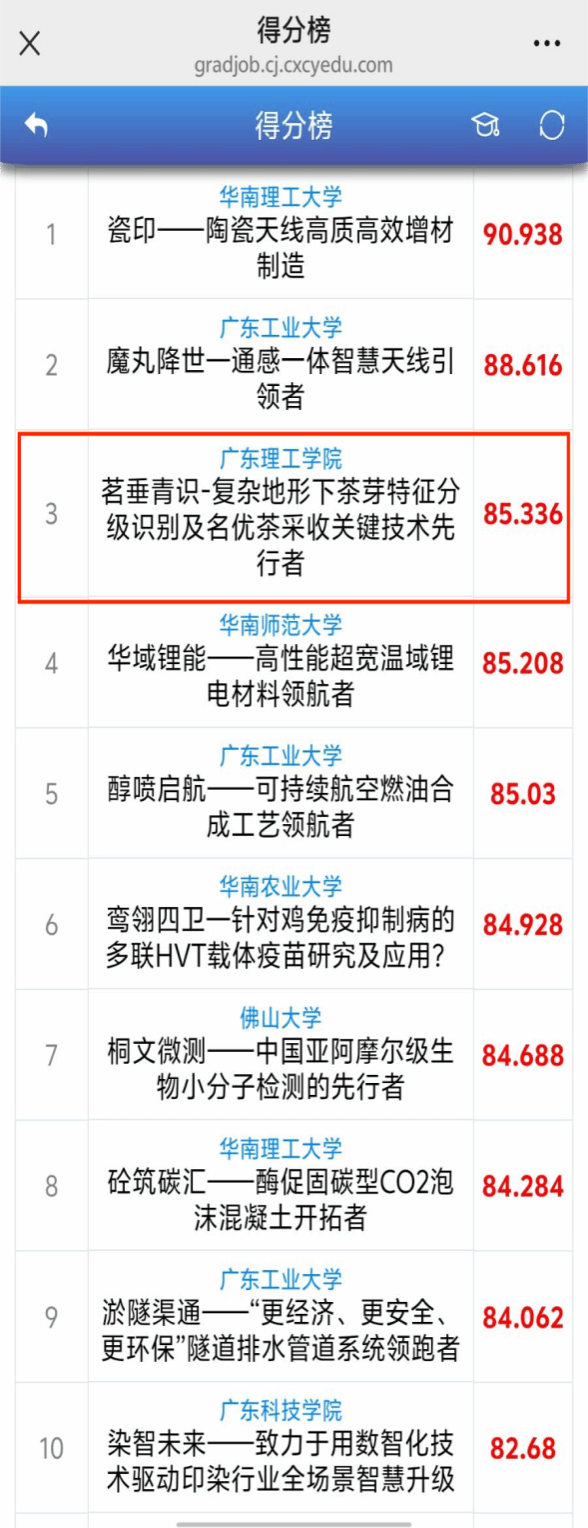 历经多年蓄力,beat365终于再度跻身省级决赛舞台。在中国国际大学生创新大赛广东省分赛决赛现场,由李浩源、曾宇奇、何柏宇、余夏萌等同学组成的“茗垂青识”团队面对分组中来自华南理工大学、华南农业大学、华南师范大学、广东工业大学等高校的数十支强劲队伍,顶住压力、沉着应战,在上半场答辩环节结束后一度跃居小组第三,展现出广理学子优秀的创新素养和临场发挥能力。
