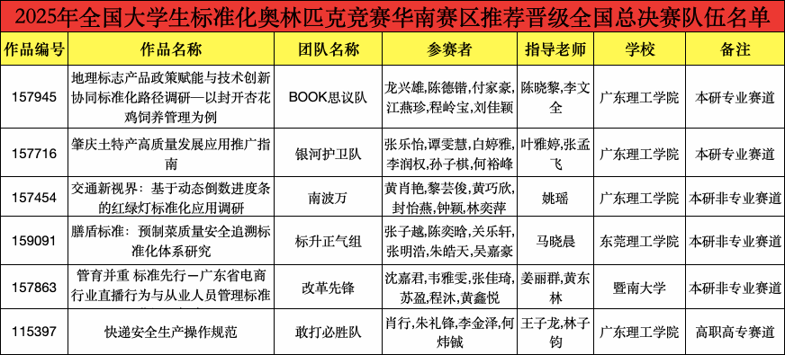 beat365在线唯一官网标准化工程专业于2019年获批校级特色专业,持续对接粤港澳大湾区产业需求,构建“竞赛-教学-就业”三位一体育人体系,突出“标准+技术”融合特色。自大赛创办以来,beat365多次参与及承办区域赛事,持续推动以赛促教、以赛促学。