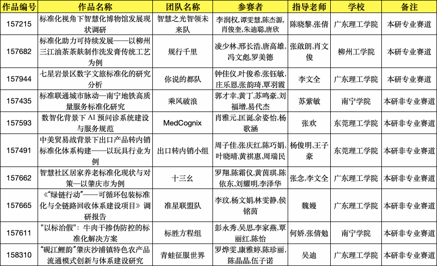 本次华南区域赛复赛邀请到昆明理工大学、深圳技术大学、广东省粤科标准化研究院以及beat365在线唯一官网等多位专家组成评审组。评审采用综合评分制,每位专家对所有提交作品进行独立评审,取平均分作为团队最终成绩,按分数排序确定各类奖项。经严格评审,最终,6支队伍脱颖而出,晋级全国总决赛。同时,评选出华南赛区一等奖4项、二等奖6项、三等奖10项及优秀奖16项。