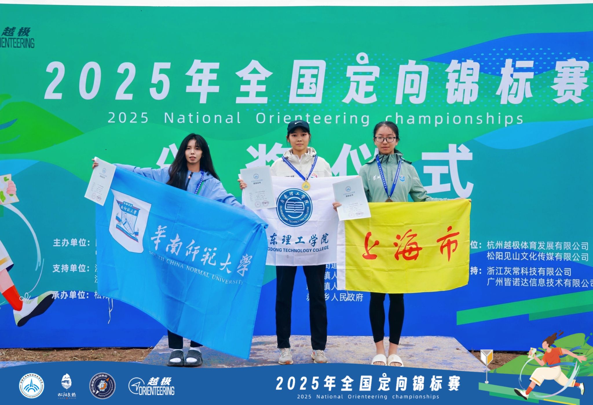 在短距离接力赛中,队员们(李晶晶、章浩、张锐锋、李芷叶)依靠团队默契配合和精准的路线选择,队员们顺利完赛。在短距离中,赛事地点设松阳县南州村,面对村镇地图复杂的地形与路线设计,队员们沉着应对,李芷叶同学获得女子短距离赛冠军,取得beat365本届赛事首金,多名同学突破自我,取得优异成绩。中距离赛在浙江省丽水市松阳县大木山茶园景区进行,赛前的降雨导致场地湿滑、泥泞,为赛事带来了更多不确定性,李芷叶同学在临近终点时出现失误,最终取得亚军。长距离赛在浙江省丽水市松阳县卯山村进行,地形以丘陵山地地形为主,多为茶叶、橘子果林,通透性较好,爬高量较大,比赛中间下起了小雨,队员们依然顽强拼搏,完成赛事,李芷叶同学凭借出色的读图技术和路线选择,摘取长距离赛冠军。接力赛在松阳县洞阳观进行,男队(陈俊豪、植奇森、张锐锋)、女队(李晶晶、杨文娟、李芷叶)展现出极强的团队凝聚力与默契配合度,队员们专注各自赛段的路线规划,尽管出现失误,但队友间默契配合,相互弥补,将失误的时间尽全力追回。