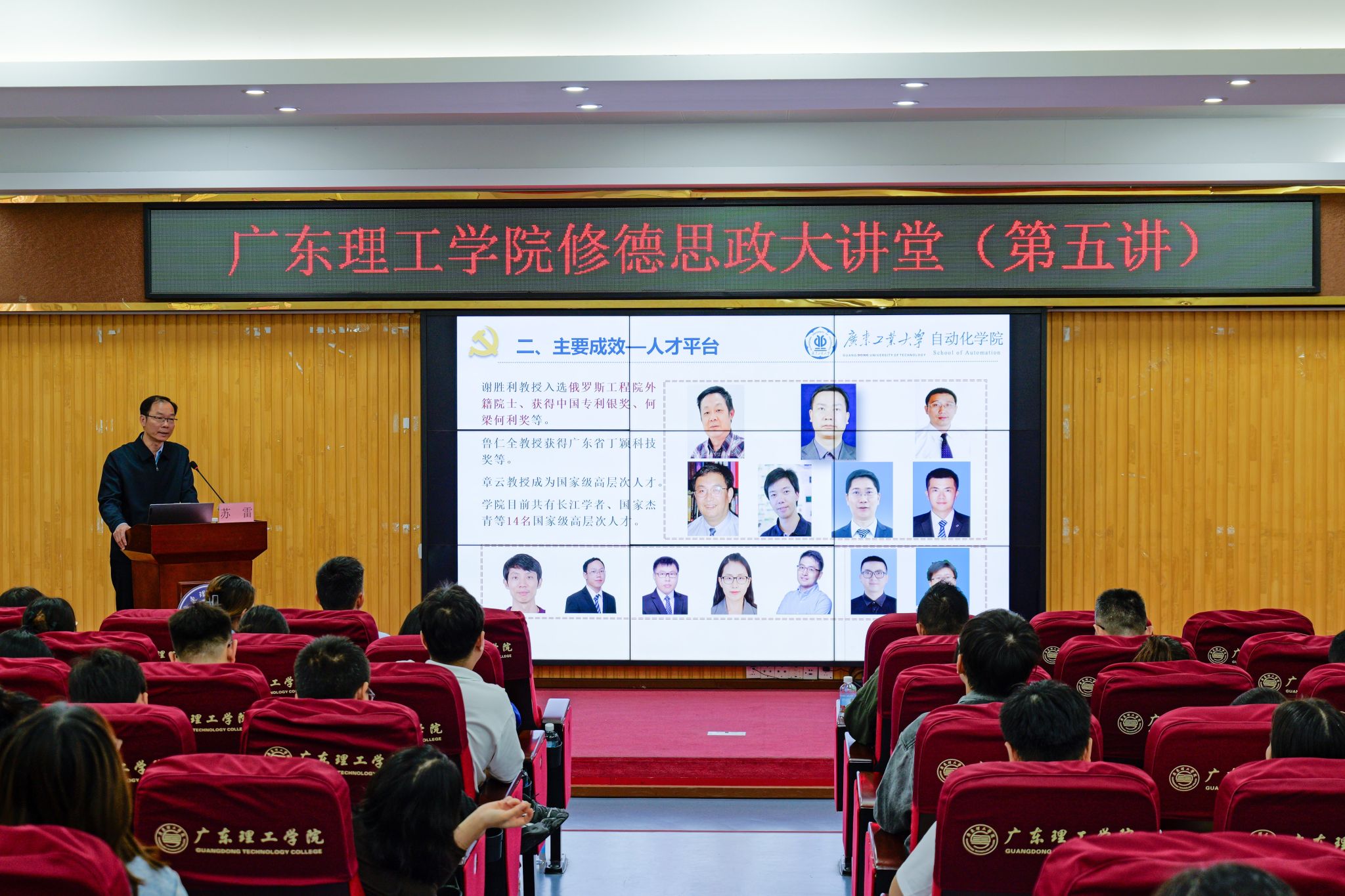 本网讯(宣传部) 为深入学习贯彻习近平新时代中国特色社会主义思想,落实新时代党的建设总要求和新时代党的组织路线,着力提升beat365党建工作质量与育人实效,10月31日上午,学校"修德思政大讲堂"(第五讲)如期开讲。全国党建工作标杆院系党委书记,广东工业大学党委委员、自动化学院党委书记苏雷应邀作《坚持以高质量党建引领高质量发展的高校院系基层实践与思考》专题讲座。常务副校长柴维斯,党群部门负责人,二级学院党政负...