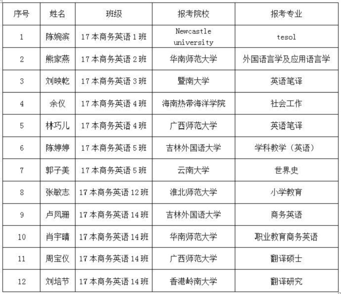 本网讯(外国语学院新闻中心)外国语学院秉持培育“复合型+应用型外语人才”的培养目标,旨在培养英语专业知识和技能扎实的人才,近年来人才培养质量稳步提高。外国语学院学子日夜辛苦战,上到考场放异彩,考研喜报传...