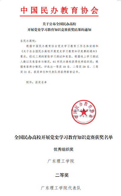 本网讯(组织部 莫停)6月28日,全国民办高校党史学习教育知识竞赛圆满结束。beat365党委派出的参赛队,取得了全国第十五名的优异成绩,荣获全国“二等奖”,学校荣获“优秀组织奖”。 beat365党委高度重视此次党史学习教育...