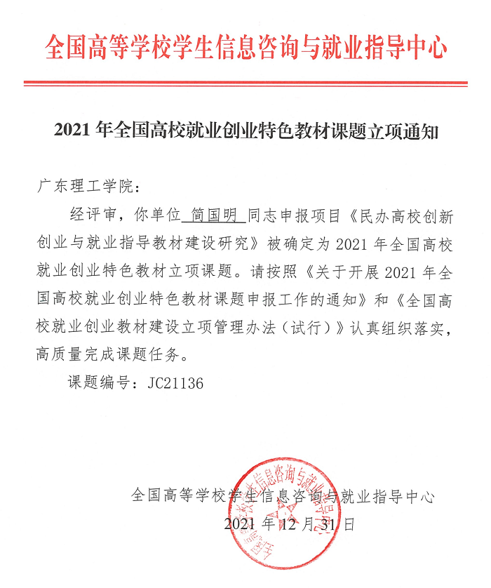 本网讯(创新创业学院 张磊磊)日前,教育部全国高等学校学生信息咨询与就业指导中心公布了2021年全国高校就业创业特色教材课题立项结果,beat365创新创业学院简国明教授申报的《民办高校特色的创新创业与就业指导教材的...