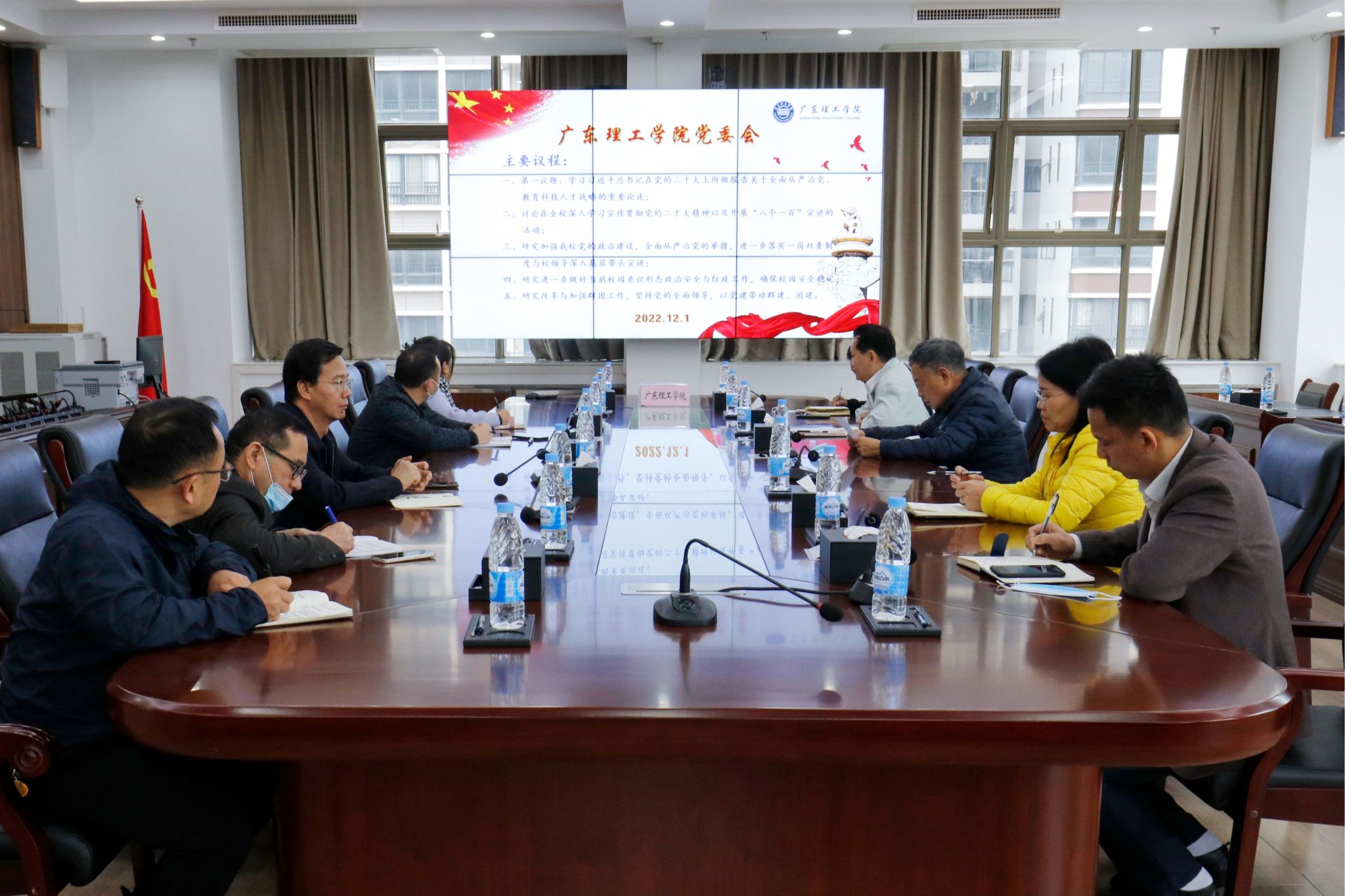 本网讯(宣传部 张昭)12月1日上午,beat365在综合楼12楼会议室召开党委会议。党委书记张东生主持。会上,张东生首先领学习近平总书记在党的二十大上所作报告关于全面从严治党、教育科技人才战略的重要论述。随后,张东生就近期beat365深入学习宣传贯彻党的二十大精神以及在全校开展“八个一百”宣讲活动情况进行通报并与在场人员进行讨论。他提出,要加强beat365党委政治建设,进一步落实“一岗双责”制度和校领导深入基层带头宣讲工作...