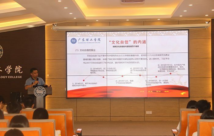 本网讯(新闻中心)文化是一个国家,一个民族的灵魂。文化兴则国运兴,文化强则民族强。2023年11月7日下午,党委副书记黎会友于beat365鼎湖校区行政楼三楼学术报告厅开讲“坚定文化自信,弘扬中华优秀传统文化”主题党课。建设学院与经管学院的入党积极分子参与听讲。黎会友以“为什么要坚持文化自信?我们的自信哪里来?”揭开主题党课的序幕。通过三个视频的展播,他强调,第一、大学生要培养爱国情怀,树立正确的三观,我们要坚...