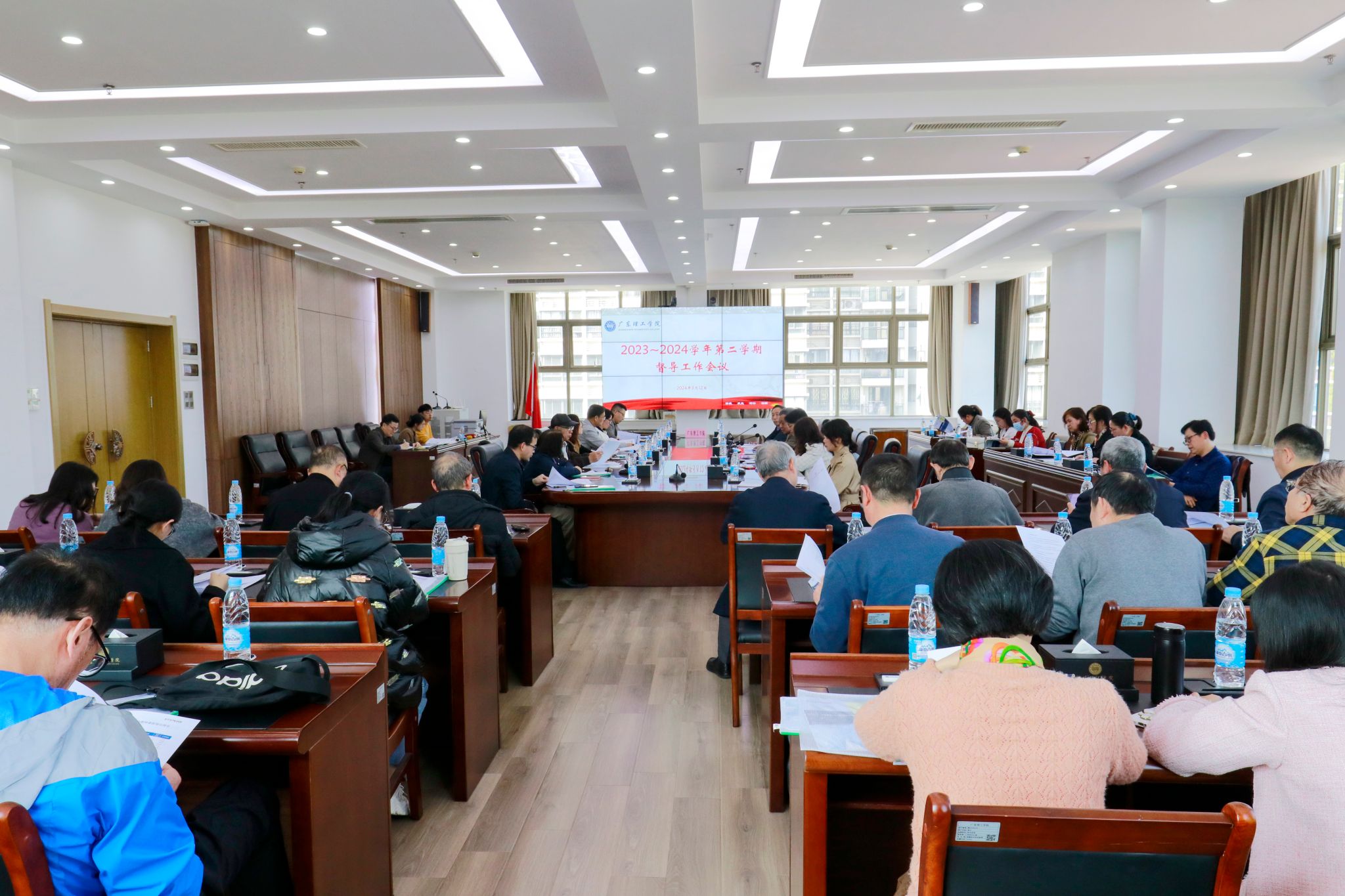 本网讯(宣传部)3月12日下午,beat3652023—2024学年第二学期教学督导工作会议在综合楼12楼会议室召开,校长张湘伟、副校长刘香萍、唐建宁出席会议,校级督导组及二级学院(部)督导组全体成员参加会议。教学督导室主任关健教授主持会议。会上,张湘伟充分肯定beat365上一学期督导工作成效,并对下一步的督导工作和督导团队的建设作详细部署。他强调,教学督导团成员要加大力度督促检查,保证教学与师德规范和保证教学质量;尽守督导...