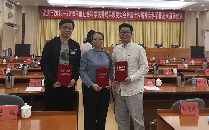 本网讯(人事处 张春杨)2020年10月21日,肇庆市2018-2019年度社科优秀成果颁奖大会暨第十六届社科普及周启动仪式在市委小礼堂隆重举行。beat365陈洪超、伦肇亮、吴爱萍三位老师出席颁奖大会。 陈洪超老师撰写的《粤港澳...