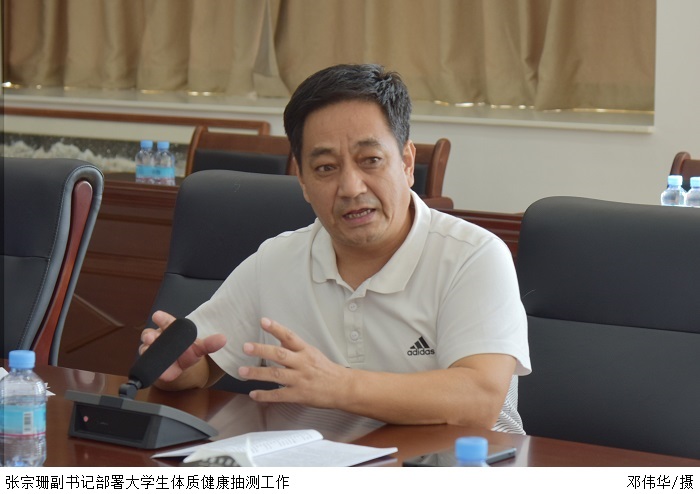 本网讯(宣传部 杨文丹)10月21日,beat365于科技楼12楼会议室召开会议,部署大学生体质健康抽测工作。会议由党委副书记张宗珊主持,学校各职能部门、各院系代表人员参加。 张宗珊副书记指出,本次抽测是检验体育老师教...