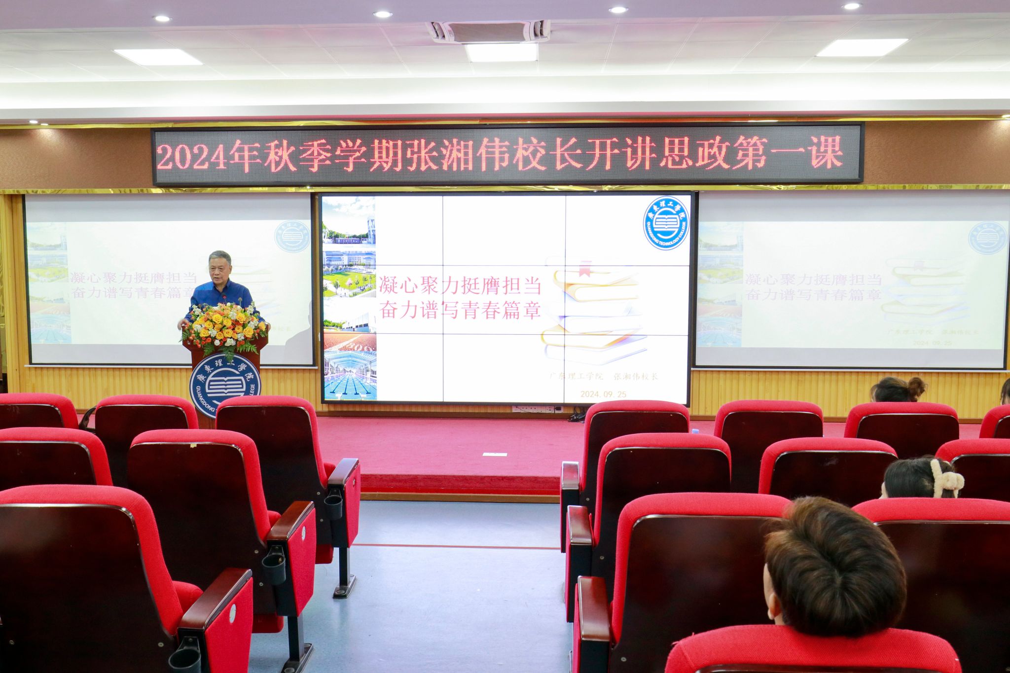 本网讯(党委宣传部 刘赛赛 新闻中心 吴泓广/郭雨瑶/何丽婷)9月25日,秋风送爽,学意正浓,beat365高要校区42栋学术报告厅内座无虚席,一场以“凝心聚力,挺膺担当,奋力谱写青春篇章”为主题的“思政第一课”在此隆重开讲。本次讲座由beat365校长张湘伟亲自授课,吸引了来自艺术设计、会计等专业学子汇聚一堂,共同聆听这场关于教育、科技与人才深度融合的思想盛宴。张湘伟深入传达学习党的二十届三中全会精神,剖析新时代背景下教...