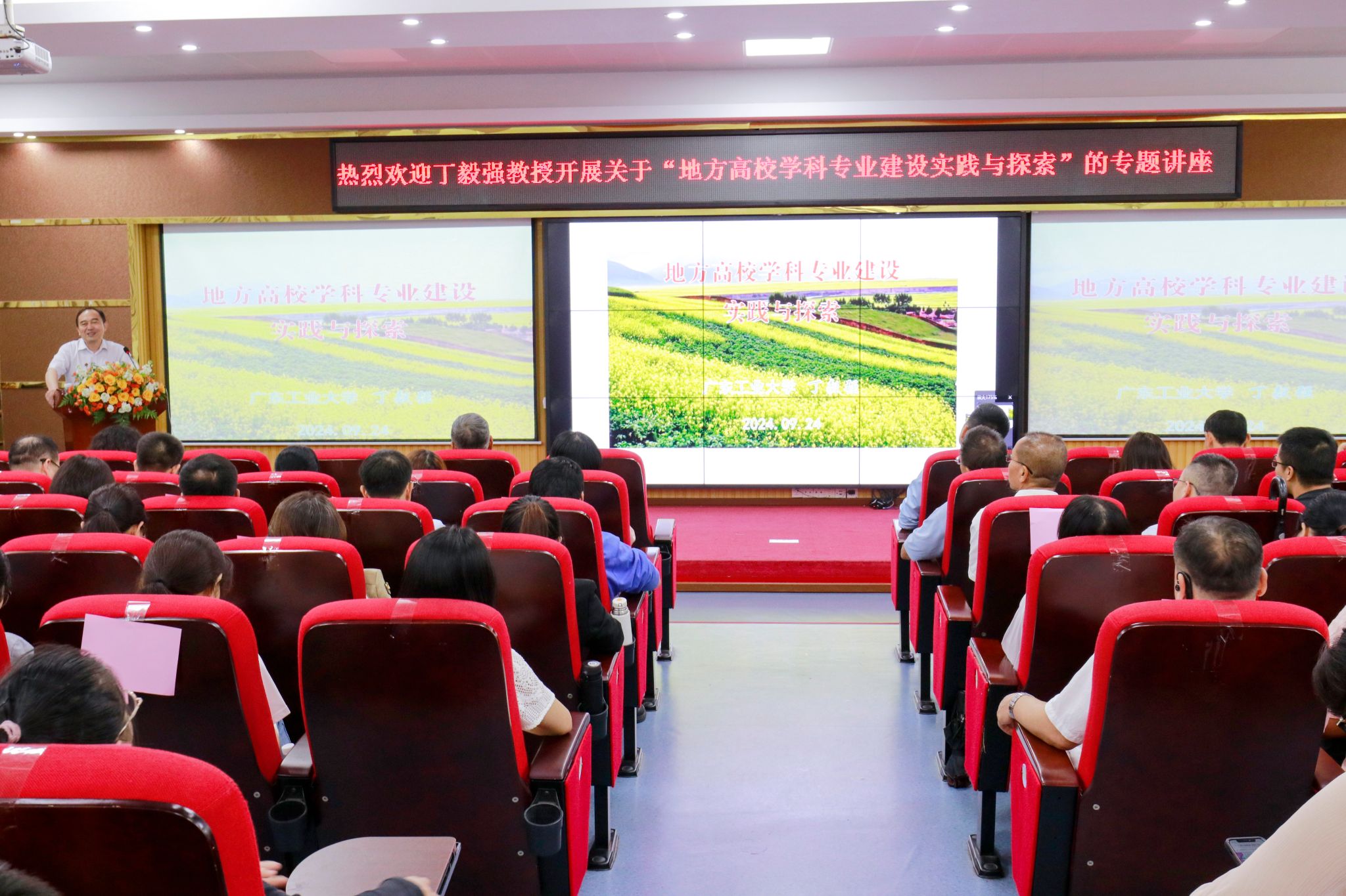 本网讯(科技处)为贯彻落实党的二十届三中全会精神,不断提高教师队伍素质水平,共同为beat365学科建设高质量发展打开新局面、增添新活力,2024年9月24日下午,学校邀请广东工业大学原学位办主任丁毅强教授作“地方高校学科专业建设实践与探索”专题讲座。本次会议在42栋101学术报告厅举行,学校领导、各教学单位院长(主任)、教研室主任、各专业带头人及教学单位骨干教师、青年教师等共260余人参会,会议由学校常务副校长柴维斯...