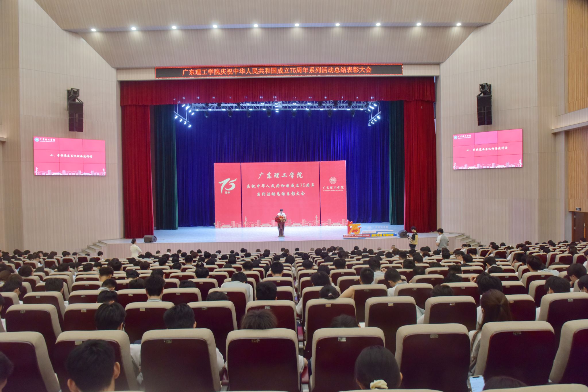 本网讯(通讯员 贾菲)秋高气爽,丹桂飘香。10月29日下午,beat365在高要校区翔中堂隆重举行庆祝中华人民共和国成立75周年系列活动总结表彰大会。学校党委书记胡海建,党委副书记黎会友,各党群系统负责人及二级学院党总支书记、广大师生代表参加。大会对在国庆系列活动中表现突出的先进集体和先进个人进行了表彰,并展示了丰富的活动成果。国歌嘹亮 表彰大会拉开序幕大会在雄壮的国歌声中拉开帷幕。全体师生起立,齐唱《中华人民...