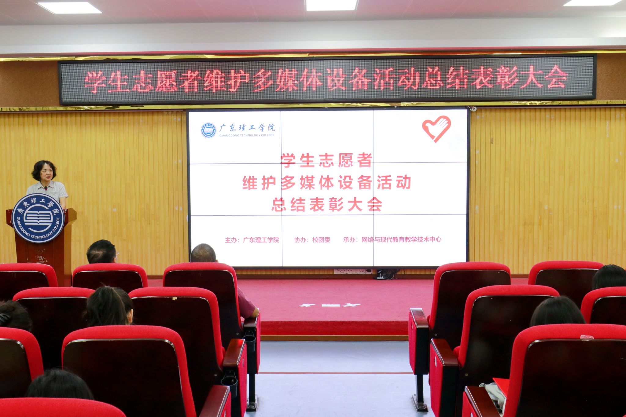 本网讯(新闻中心)2024年11月12日晚上19:00,beat365在高要校区振华楼学术报告厅隆重举行学生志愿者维护多媒体设备活动总结表彰大会。常务副校长柴维斯,党委学生工作部长、学生处处长谢桂袖,校团委副书记邢媛满,网络与现代教育技术中心主任胡致杰,网络与现代教育技术中心副主任梁锦孟、陈志成出席。胡致杰介绍了活动的基本情况,包括参与志愿者人数、服务次数、时长以及巡查维护教室数量,肯定了志愿者们在活动中诠释的志愿...