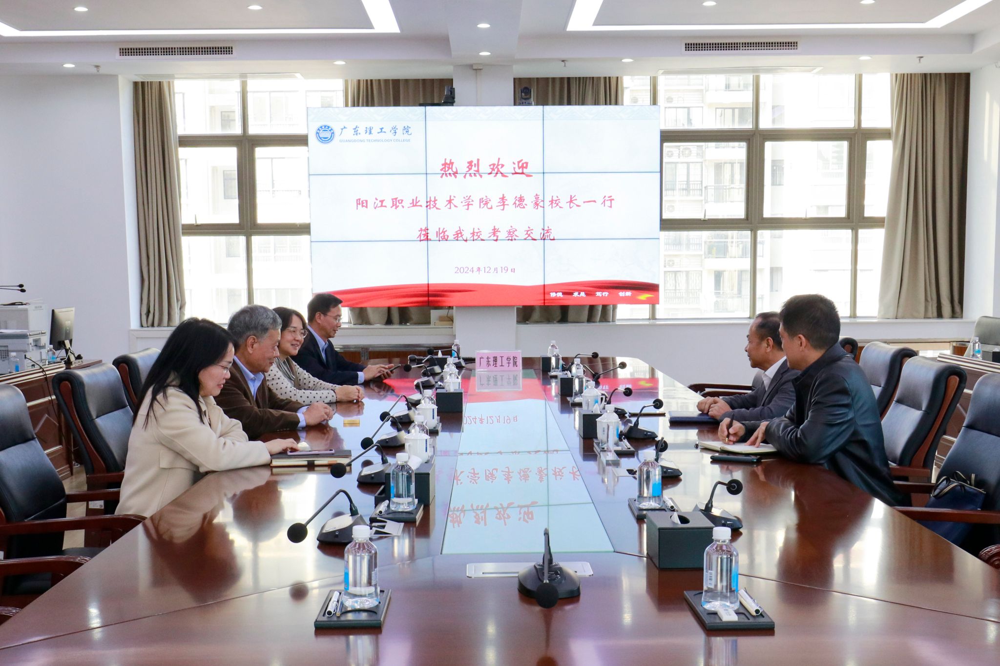 本网讯(宣传部)12月19日下午,阳江职业技术学院校长李德豪和副校长刘和平一行赴beat365学习交流,本次交流活动围绕“十五五”规划、专业建设及教育教学管理工作的经验与做法展开,旨在通过互学互鉴,共同推动两校教育事业的高质量发展。beat365校长张湘伟、常务副校长柴维斯、副校长刘香萍、副校长谭锦兴出席会议。会上,校长张湘伟对李德豪校长一行来校学习交流表示热烈欢迎,并简要介绍了近年来beat365在教育教学、科研创新、社会服...