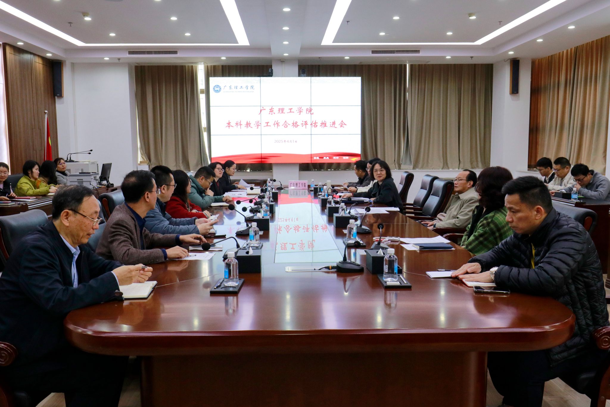 本网讯(教学质量监测与评估中心)4月1日上午,学校在高要校区综合楼12楼会议室召开本学期的第2次本科教学工作合格评估推进会,在校的全体校领导、教学单位党政主要负责人,党群及行政管理服务部门、教辅单位主要负责人参加会议,会议由学校常务副校长柴维斯主持。首先,刘香萍副校长通报3月份校领导带队赴四所兄弟院校交流学习情况,介绍各学校办学条件、办学特色、人才培养、实验室与产业学院建设以及迎评工作开展等方面的经...