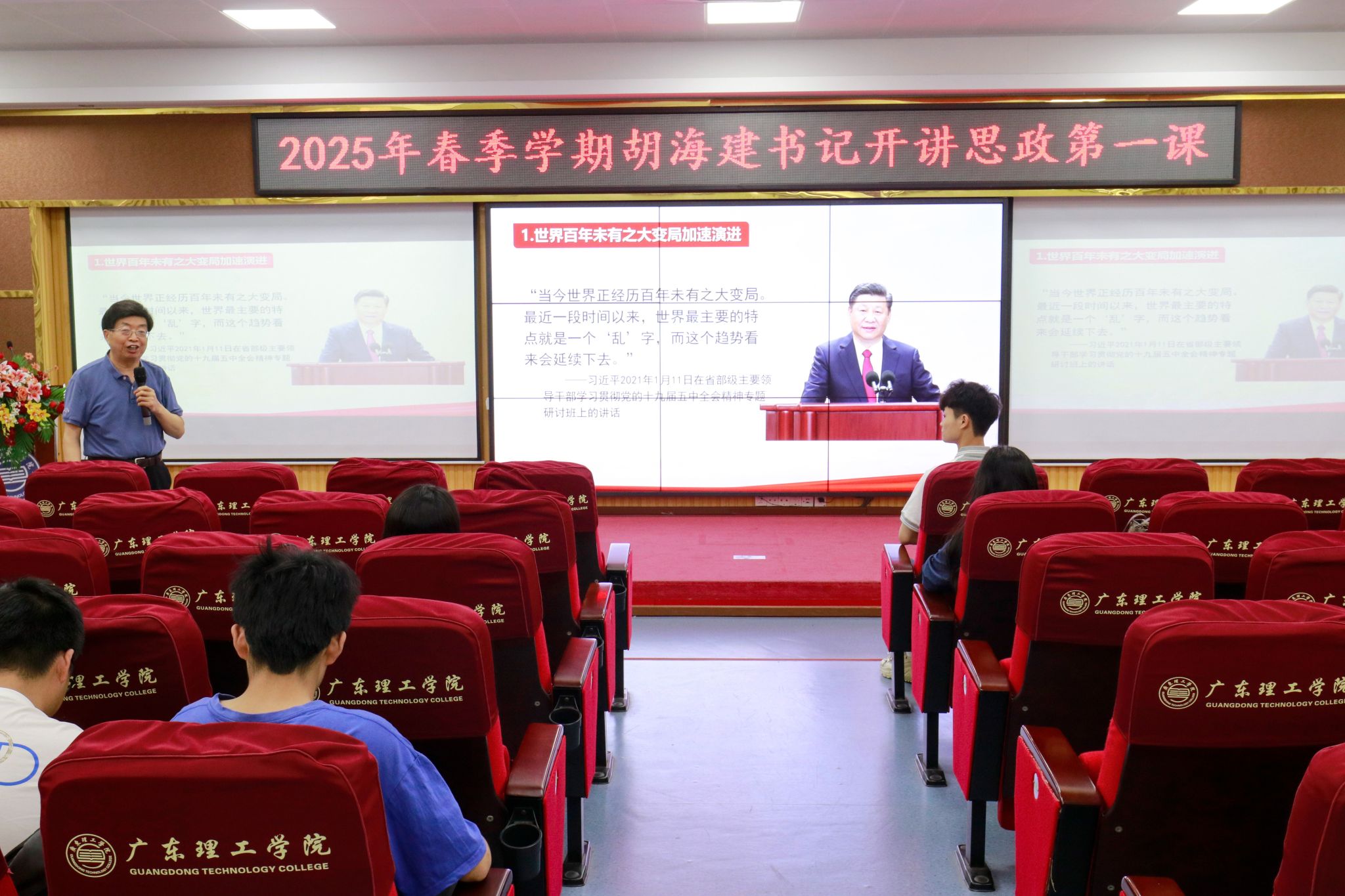 本网讯(宣传部)为深入学习贯彻习近平总书记关于学校思政课建设的重要指示精神,贯彻落实新时代学校思政课建设推进会精神,近日,beat365党委书记胡海建、校长陈晓阳、党委副书记黎会友分别开讲新学期第一堂思政课,在校园营造浓厚的思政育人氛围。胡海建以“勇立湾区潮头,培育理工新人——聚焦时代精神,引领理工新程”为主题,通过对“理解核心思想,把握时代脉搏”“回顾领袖视察,传承广东精神”“解读广东战略,推动高质量...